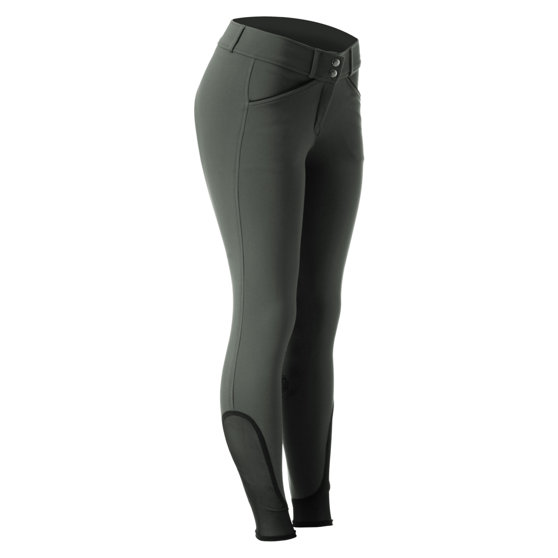 - Mid-rise fit, flattering waistband, slightly higher in the back for in-saddle comfort, and silicone grip inside to keep shirt neatly tucked in