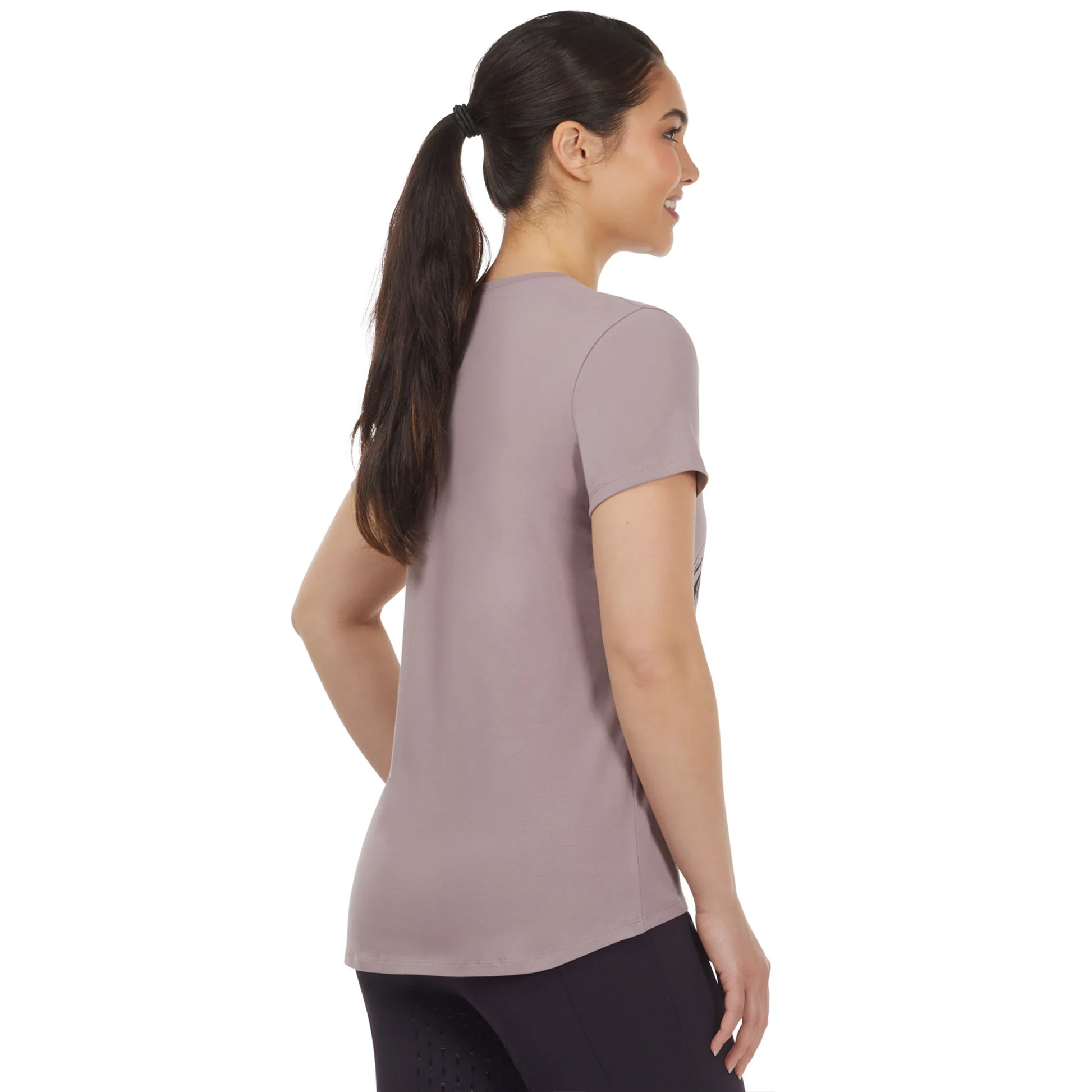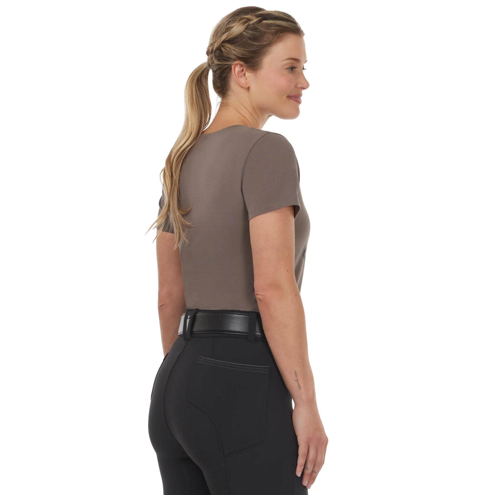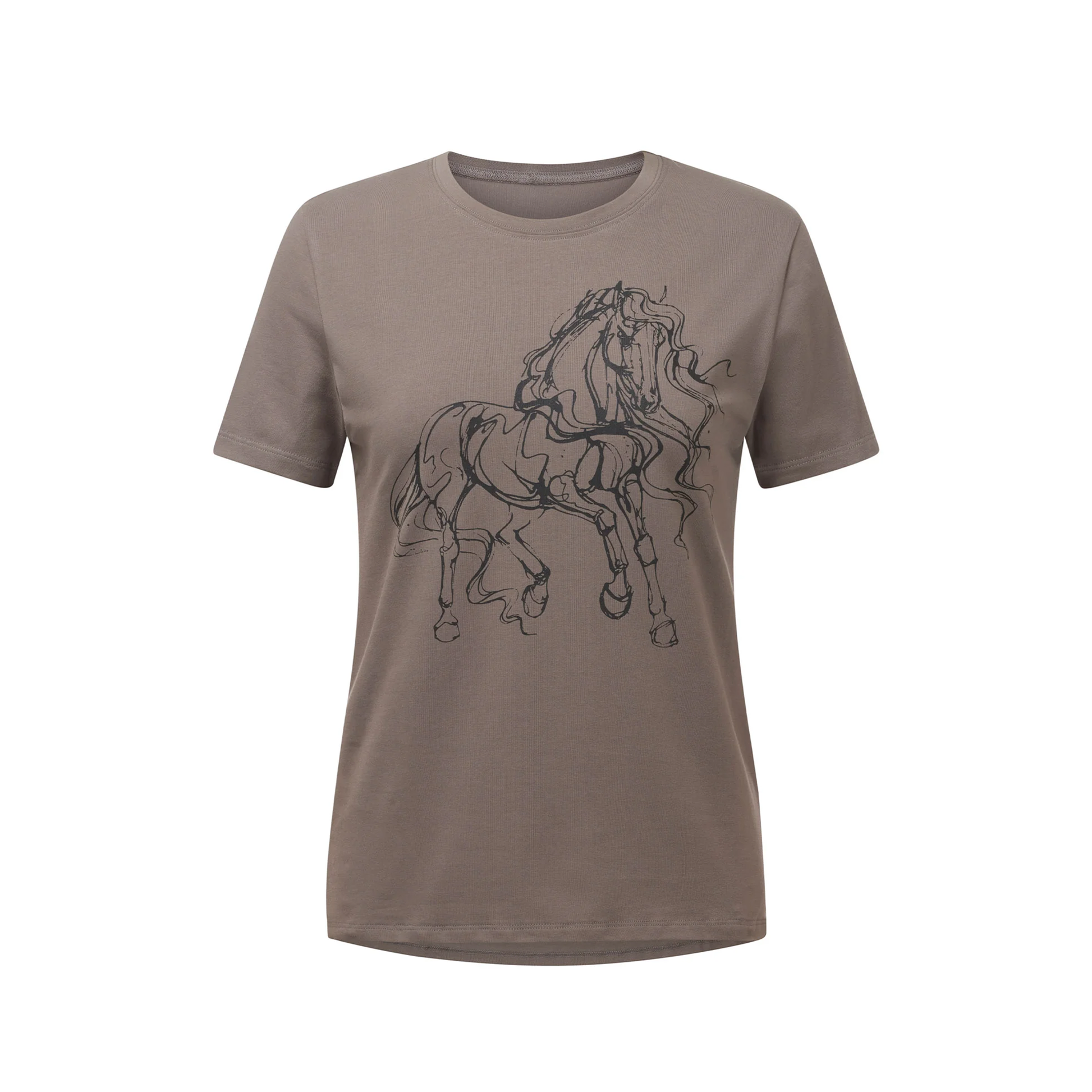 Super-soft, cotton-based tee shirt with dynamic horse art. The swirling mane and tail convey equine power and elegance on a stretchy, sporty top that lets you take your love of horses everywhere. Relaxed fit and scoop neck keep things feminine. Hip-length hem and short sleeves flatter for a comfy tee that shows your love of horses in stunning style.