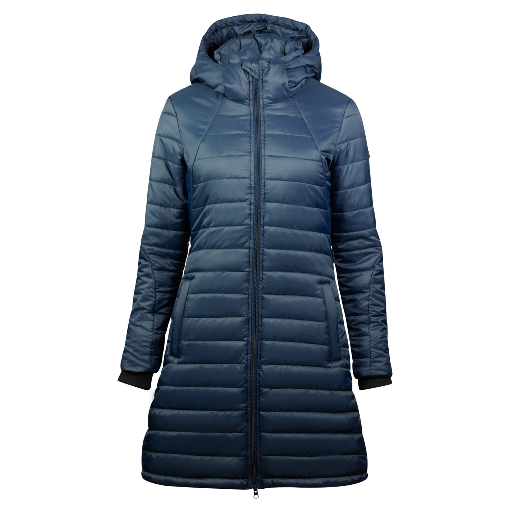 The long skirt opens in the back and magnetic snaps keep drafts away while protecting your saddle from scratchy buckles or buttons. Adjustable elastic straps on the inside let you customize the fit. A tapered waist adds a feminine fit to this versatile, long jacket. 3000mm/3000mvp, no taped seams.
