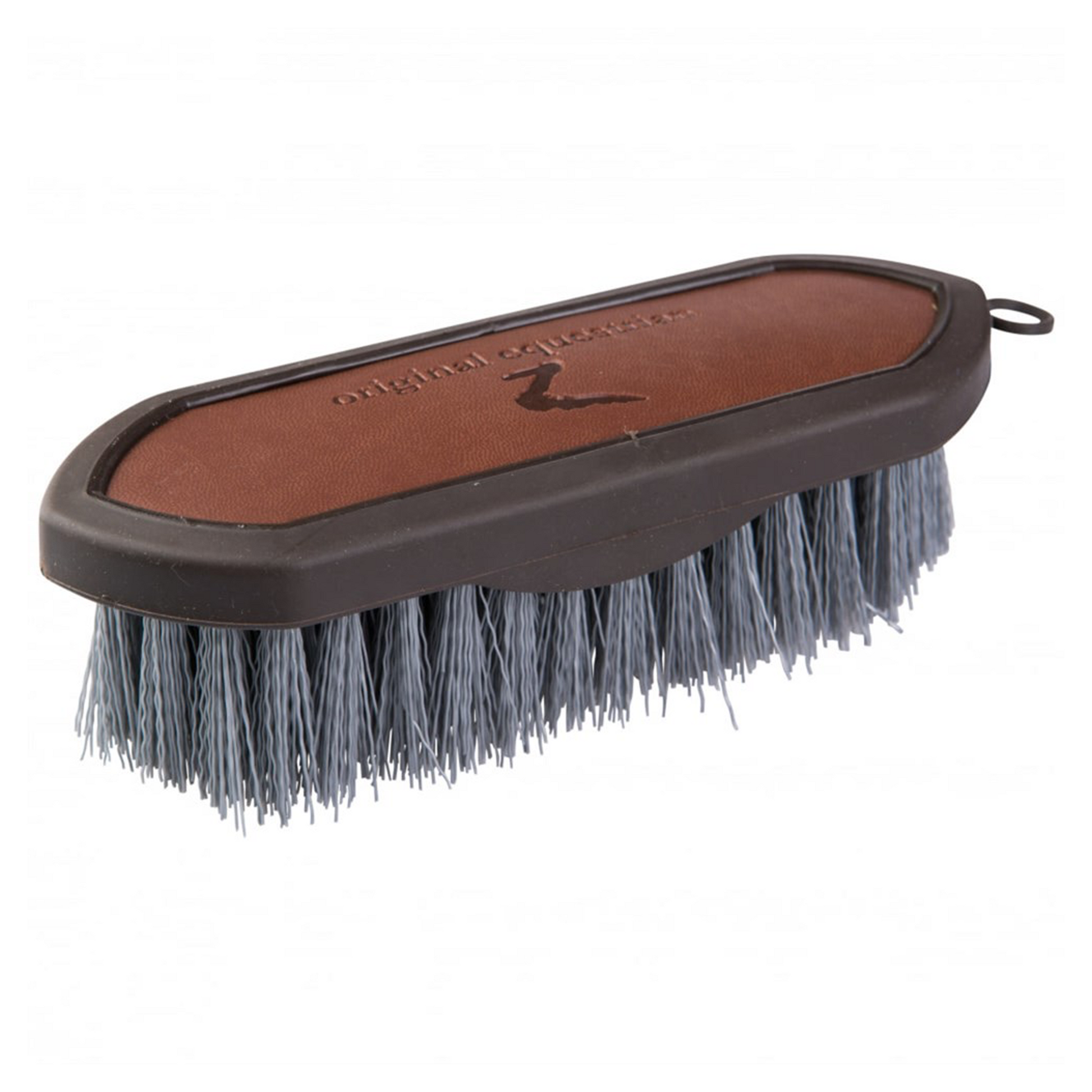 This hard brush features a stylish synthetic leather insert in the handle for a bit of flair. It features a sturdy plastic backing and easy to care for synthetic bristles. This brush easily removes ground-in dirt and loose hair from your horse's skin.