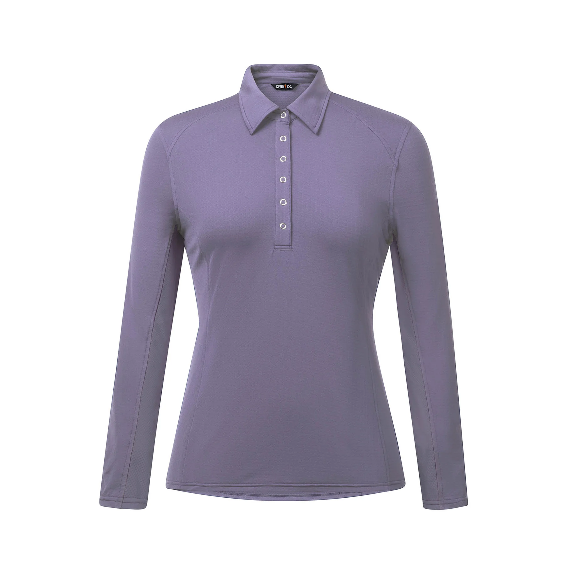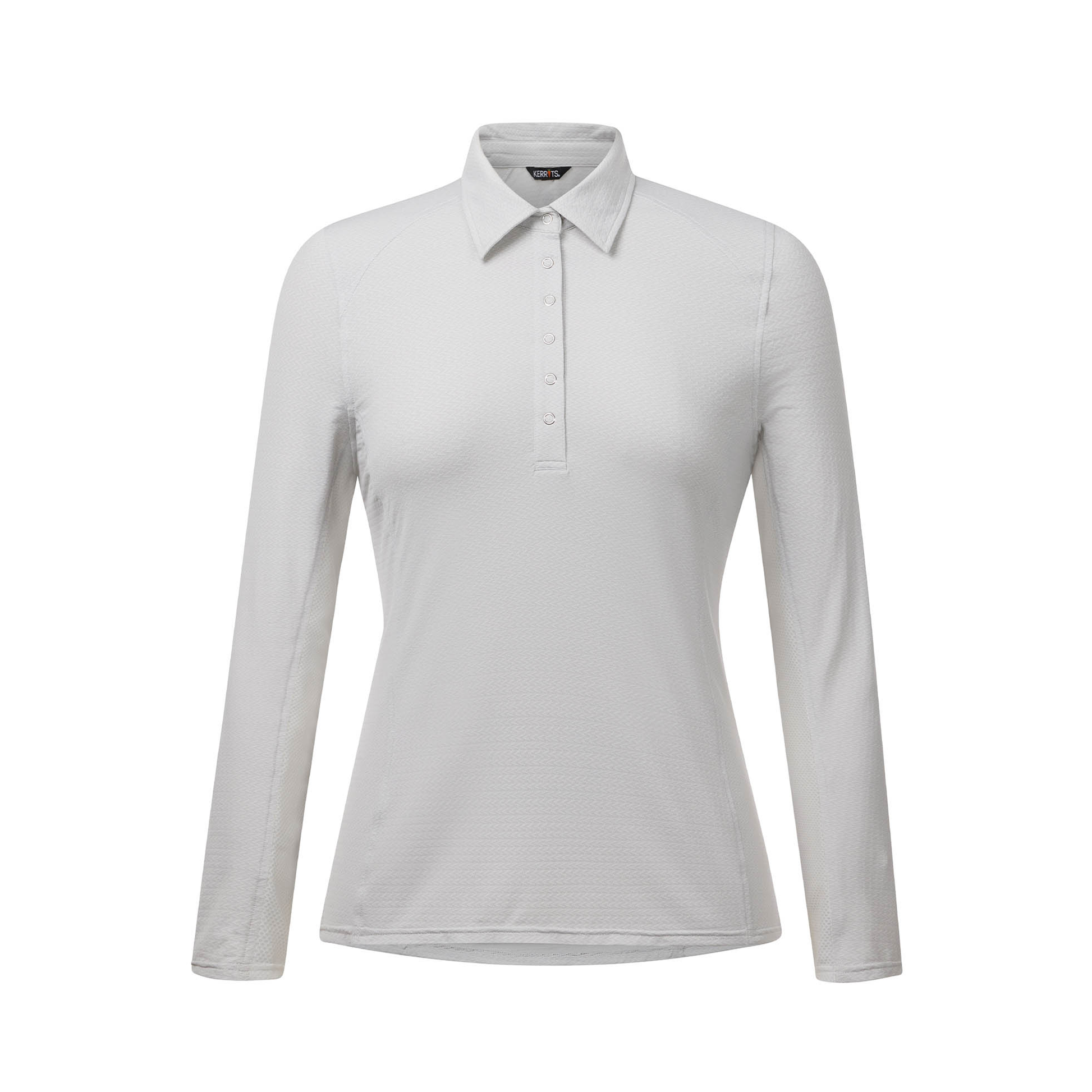 A naturally cooling long sleeve riding shirt with lines and features that elevate your riding look for visiting professionals or just because you want to. Subtly textured fabric provides coverage, with a light stretch that moves with you. The natural fibers spun from collagen harvested from the ocean feel soft and cool as it wicks and protects from UV light. Underarm mesh panels boost ventilation. Point collar, snap placket, and flattering seams enhance a streamlined summer staple.