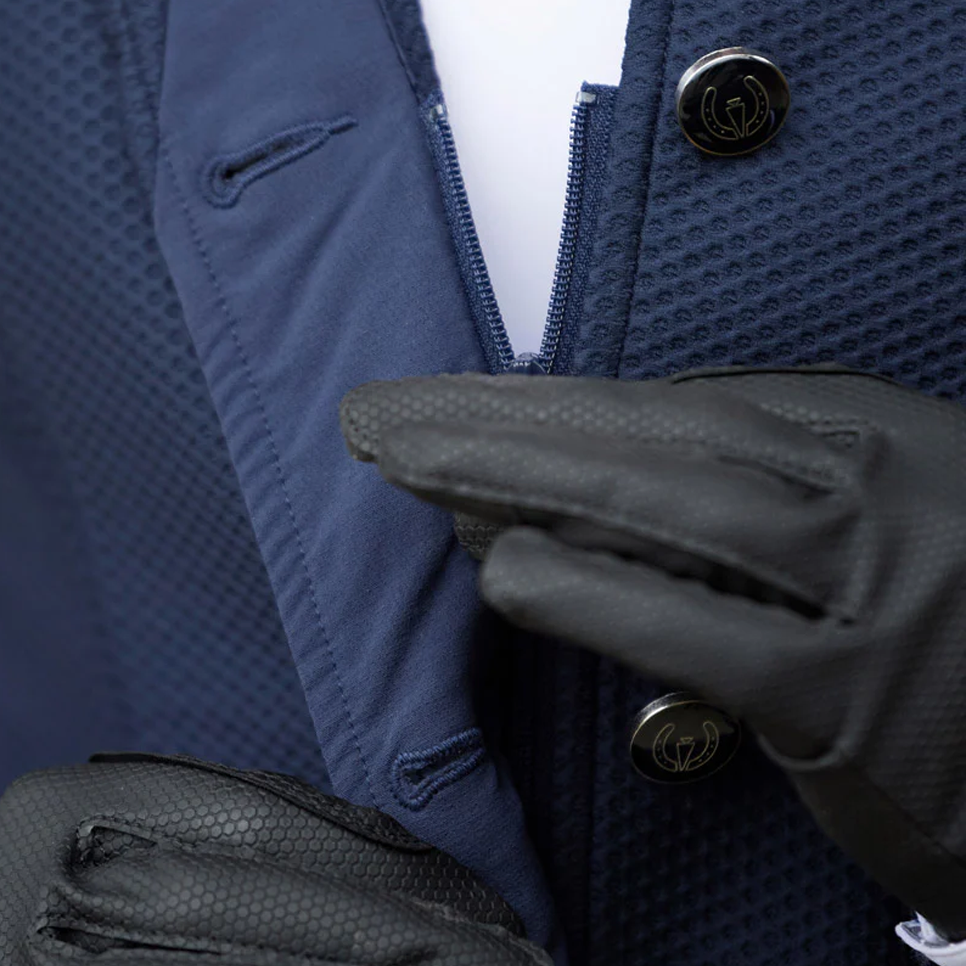 When competition heats up, kids can keep their cool with Kerrits Aero Mesh four-way stretch fabric delivering air flow, breathability, and comfort without sacrificing traditional styling in a show coat. Machine washable, unlike the pony.