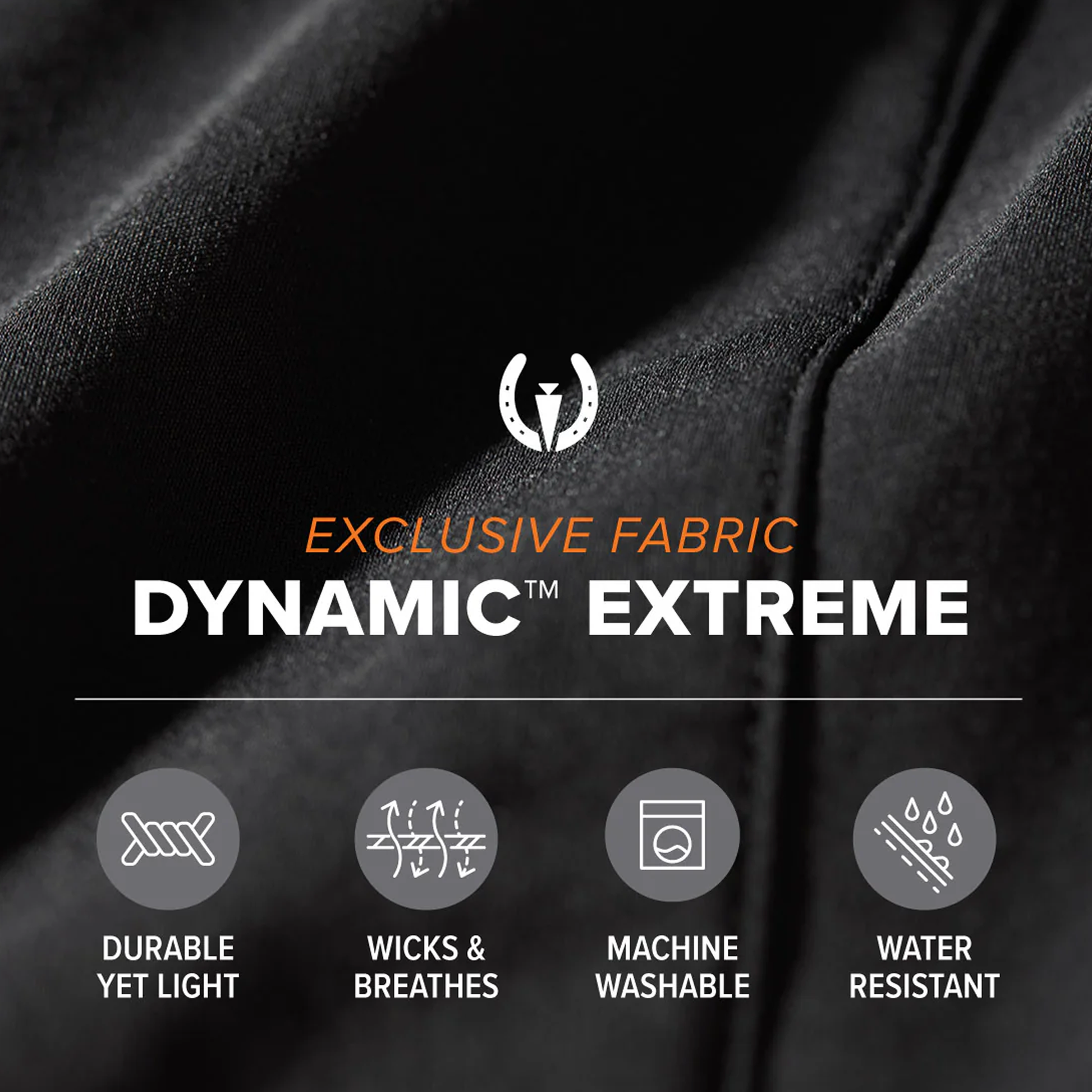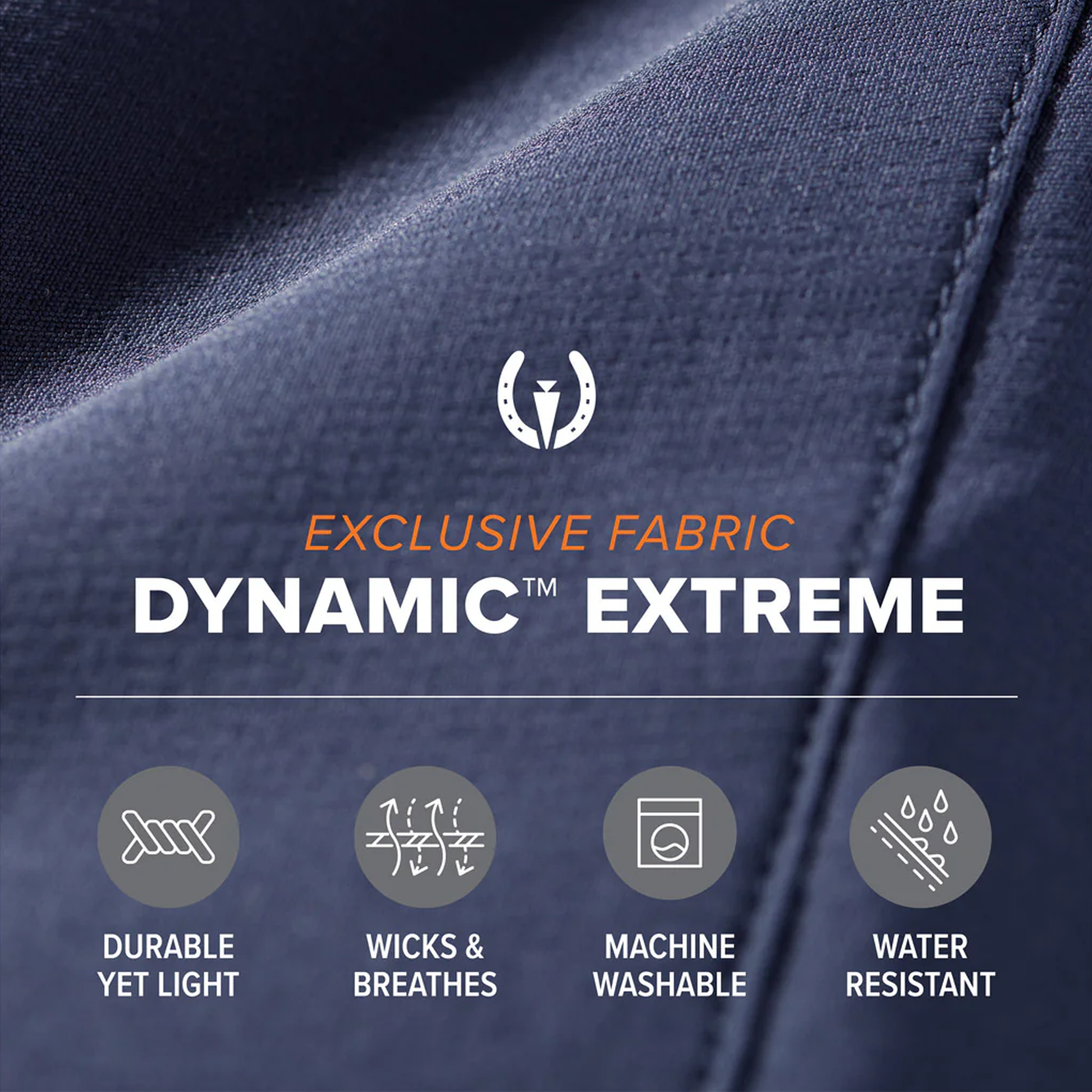 Classic styling that’s machine washable, this lightweight, breathable kids show coat stretches for unrestricted riding—and growing. Pony and dog slobbers? No worries! The Dynamic Extreme fabric sheds horse grime and everything else that comes with showing. Toss it in the washing machine and kids are ready for the next competition.