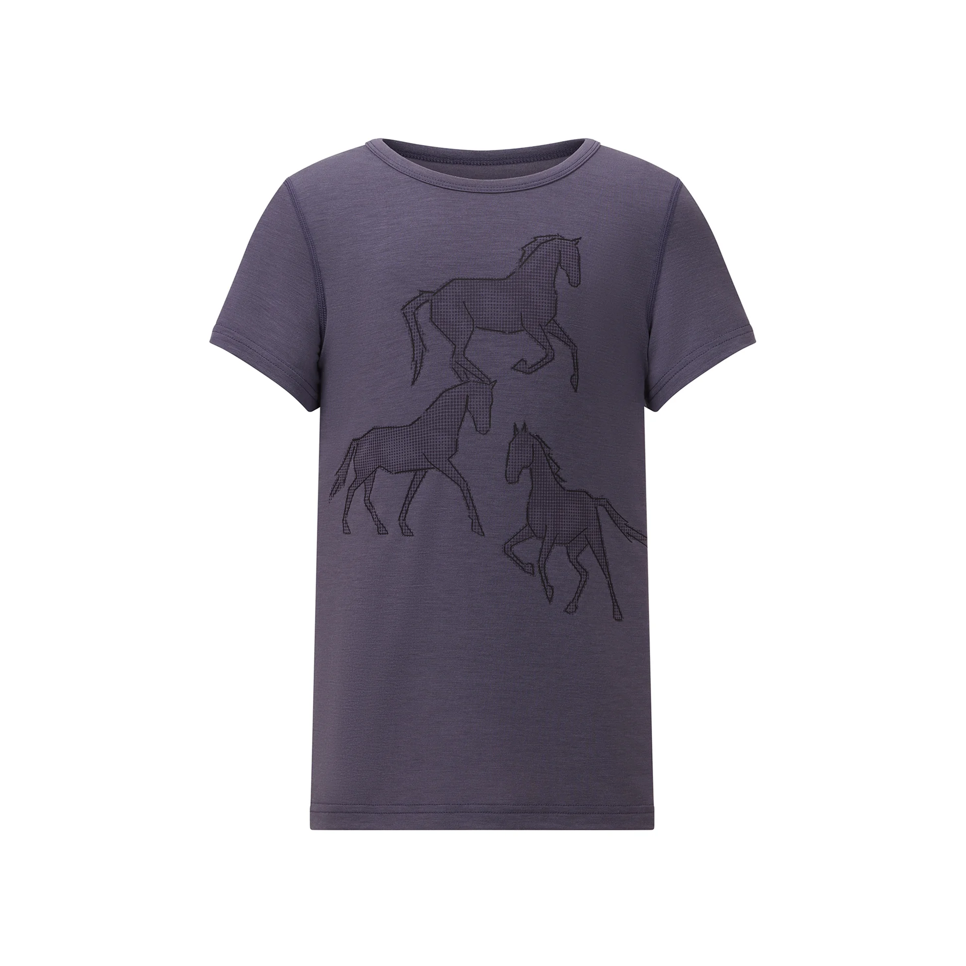 A soft and stretchy technical tee shirt with three horses front and center for kids who think of nothing else. This performance tee breathes and wicks for a better-than-basic summer must have that meets pony-kid approval. Plus, this super comfy top in bright summer colors coordinates beautifully with their favorite Kerrits tights.