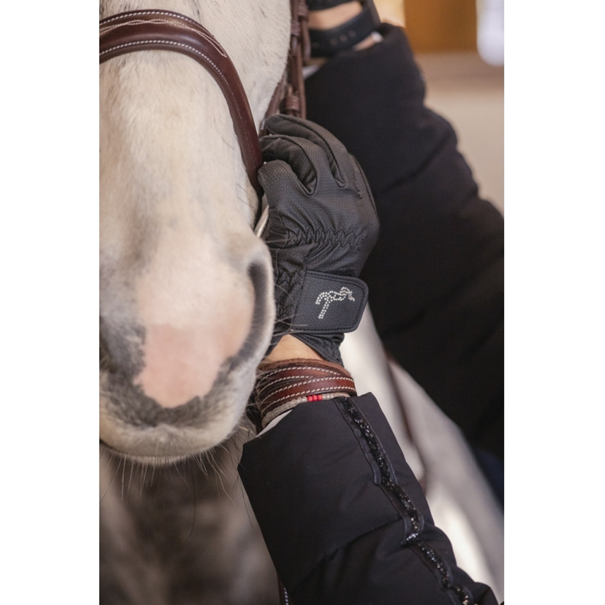Stay warm and stylish with the Lyoni Pénélope Gloves—the perfect combination of comfort and elegance for daily wear. These gloves fit snugly, providing full dexterity while on horseback, allowing you to maintain control without sacrificing style. Designed with a Velcro closure on the top of the hand, they adapt to various wrist sizes and are finished with a Pénélope logo in rhinestones, adding a chic and subtle touch to your riding gear. Lined with synthetic fur, these gloves will keep your hands warm and cozy throughout the winter.