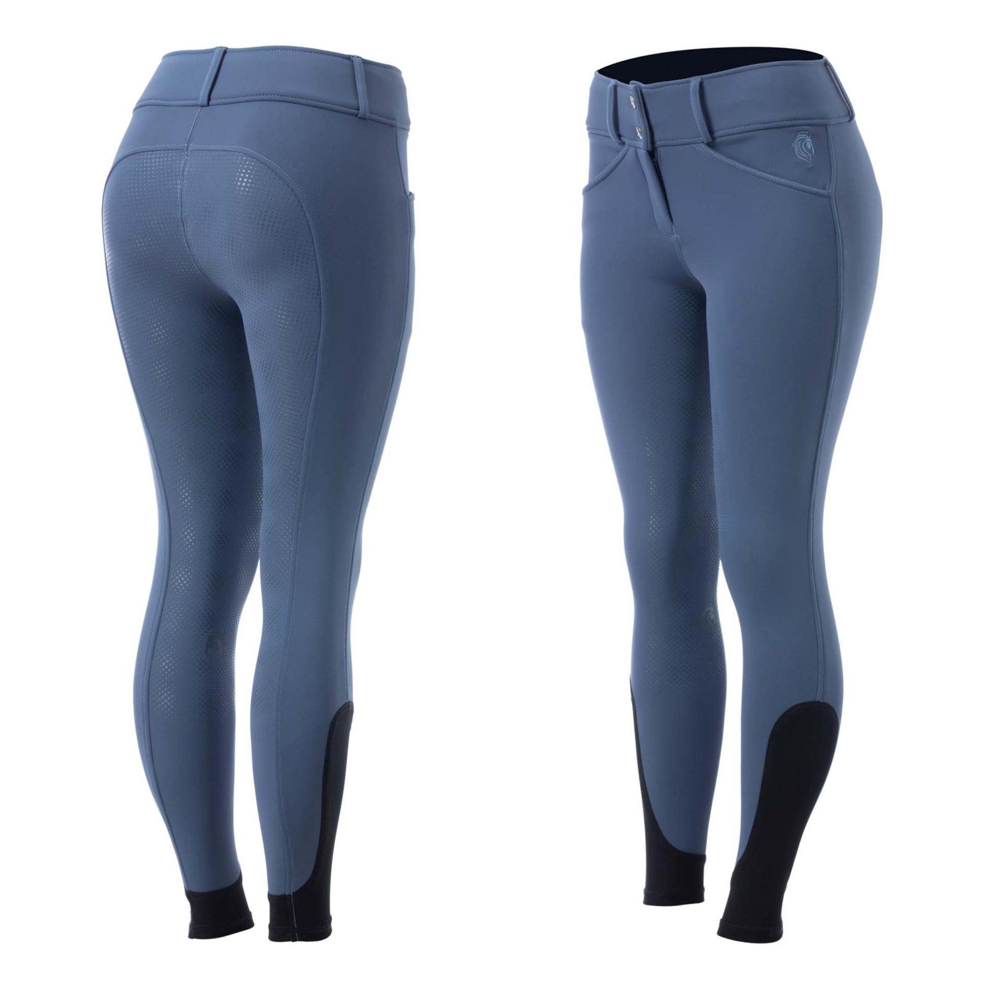 The Equinavia Maud Womens Thermo Softshell Full Seat Breeches are water-repellent, wind-resistant and super comfortable and warm. The stretchable, breathable soft-shell fabric also repels hay and horse hair so you will stay clean and provides easy care and maintenance. This breech has a cozy fleece lining to keep you warm on chilly days. The extra wide waistband provides a flattering fit and great comfort in the cold weather. Just like the Maud original breeches, the material of the Maud thermo breeches provides excellent stretch to move with you comfortably while keeping its shape. It has two front slash pockets with room for a phone and treats. The silicone full seat in a matte finish offers a secure grip without being too sticky.