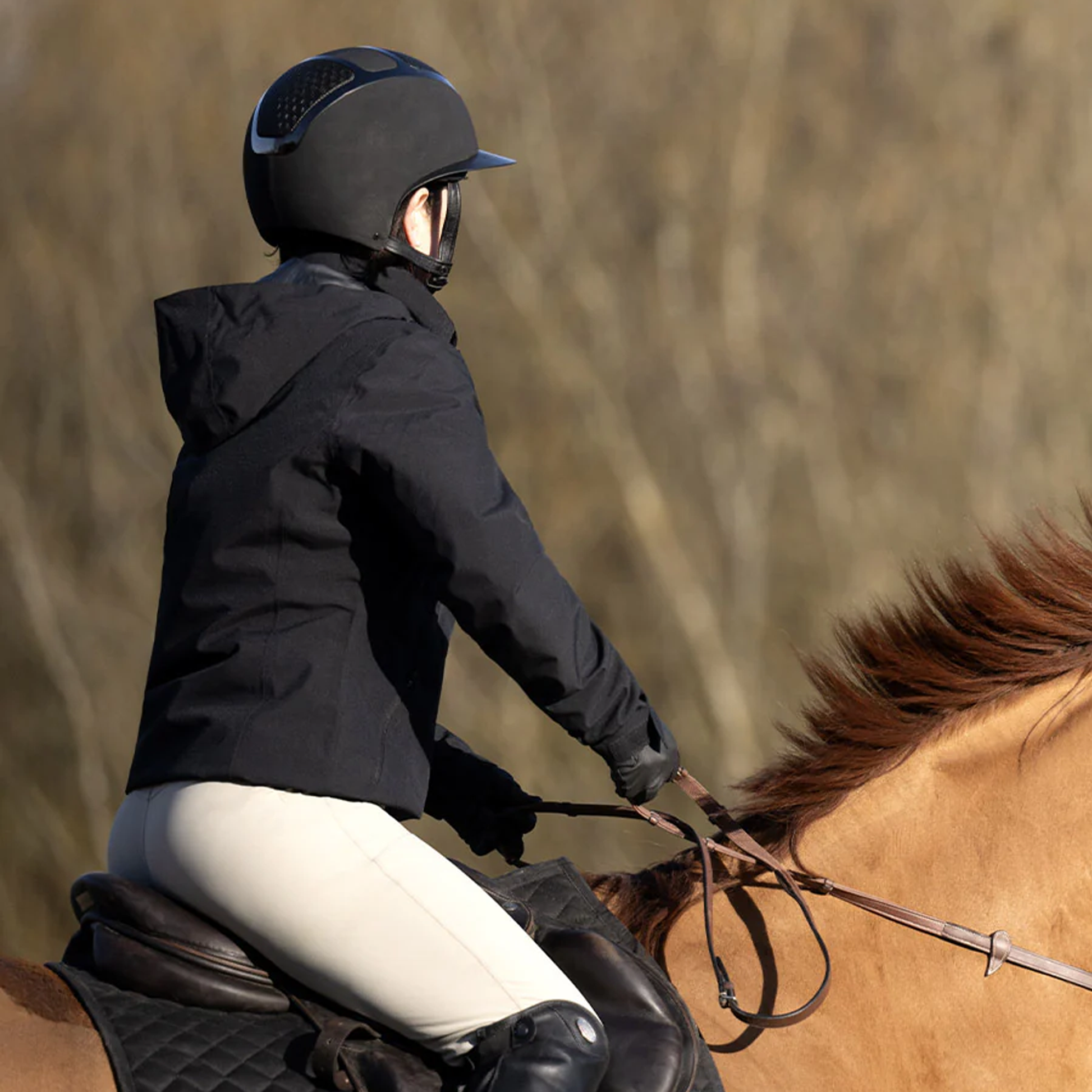 • Hip length with drawcord at the hem to cinch up and out of the way while in the saddle