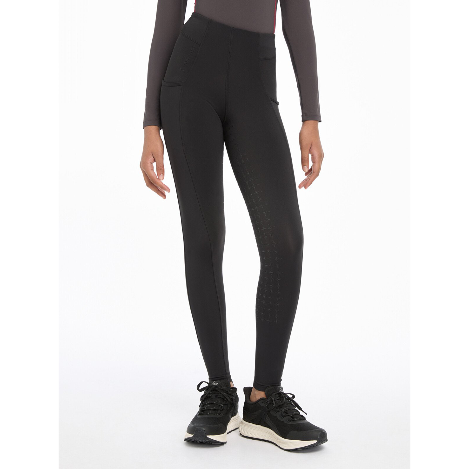 The four-way stretch fabric and seamless design provide movement-friendly freedom, while the elasticated waistband ensures a secure, supportive and forgiving fit. Full seat grip offers security in the saddle, while the tapered lower leg design reduces bulk under boots for enhanced comfort.